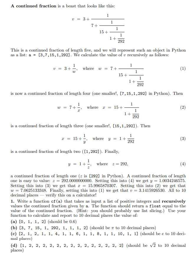 Solved A Continued Fraction Is A Beast That Looks Like This Chegg Com