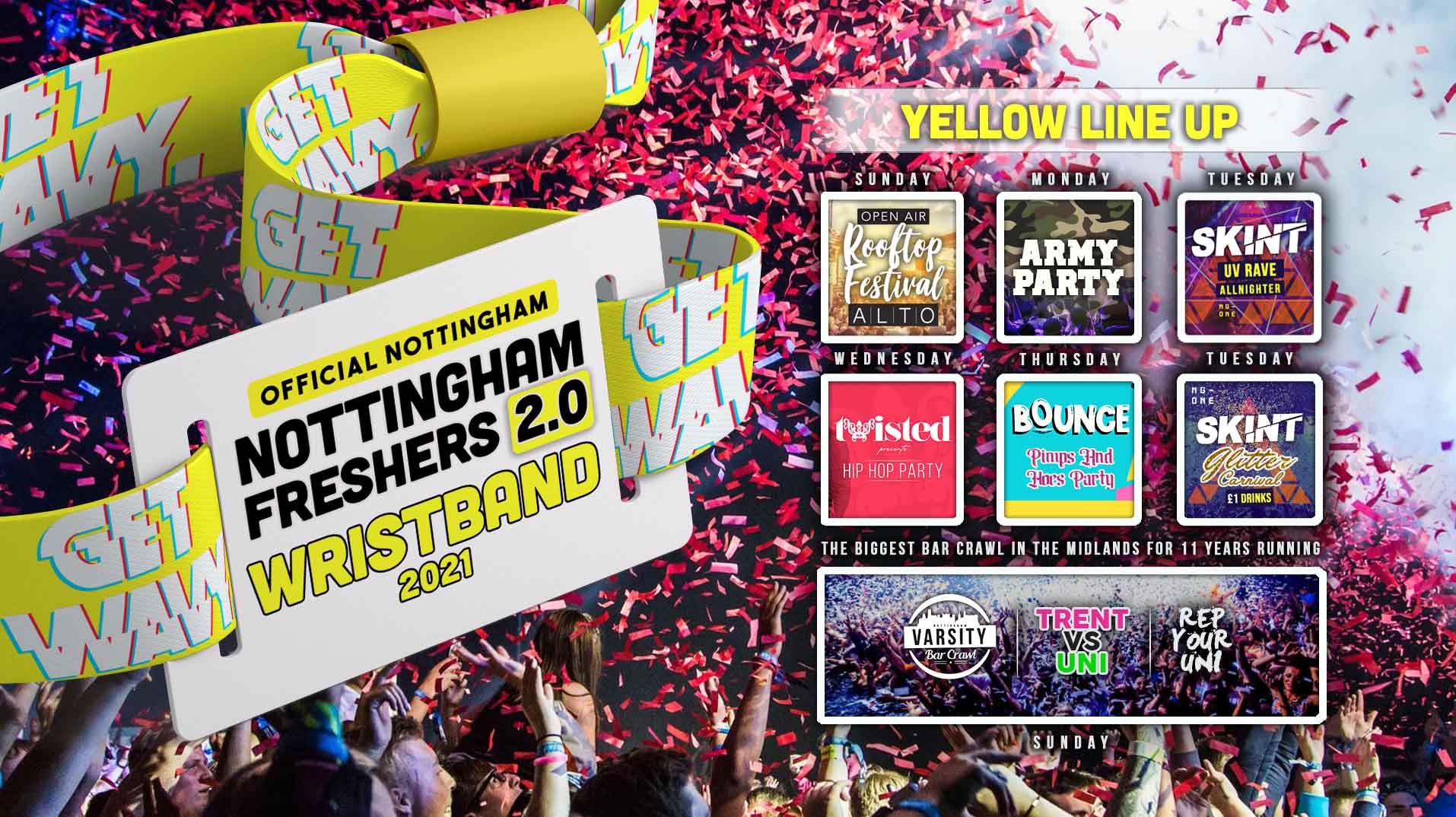 Official Nottingham Freshers 2 0 Wristband 2021 Yellow Line Up Hosted By Get Wavy At Various Venues Nottingham On 19th Sep 2021 Fatsoma